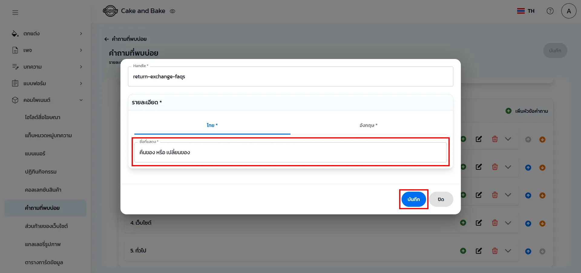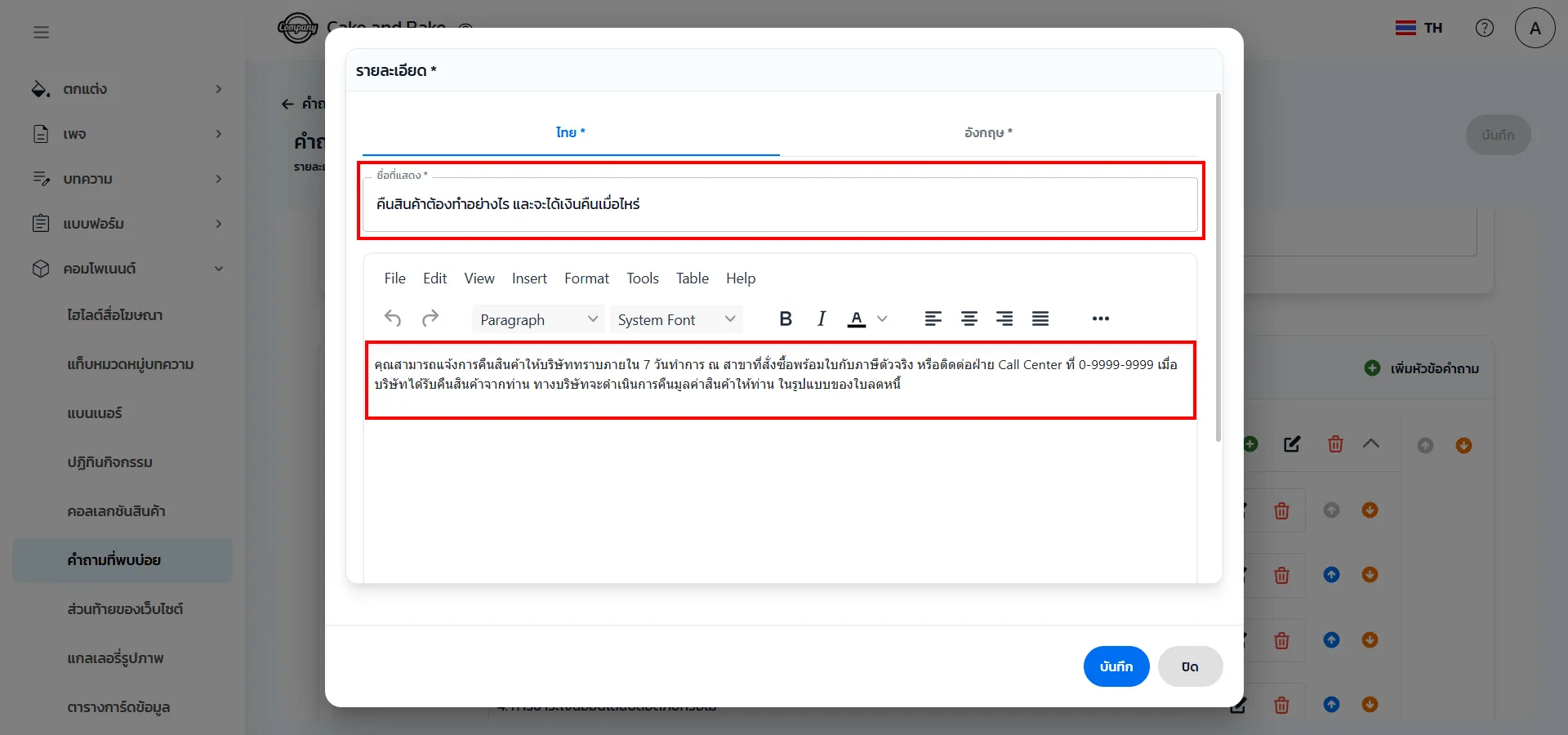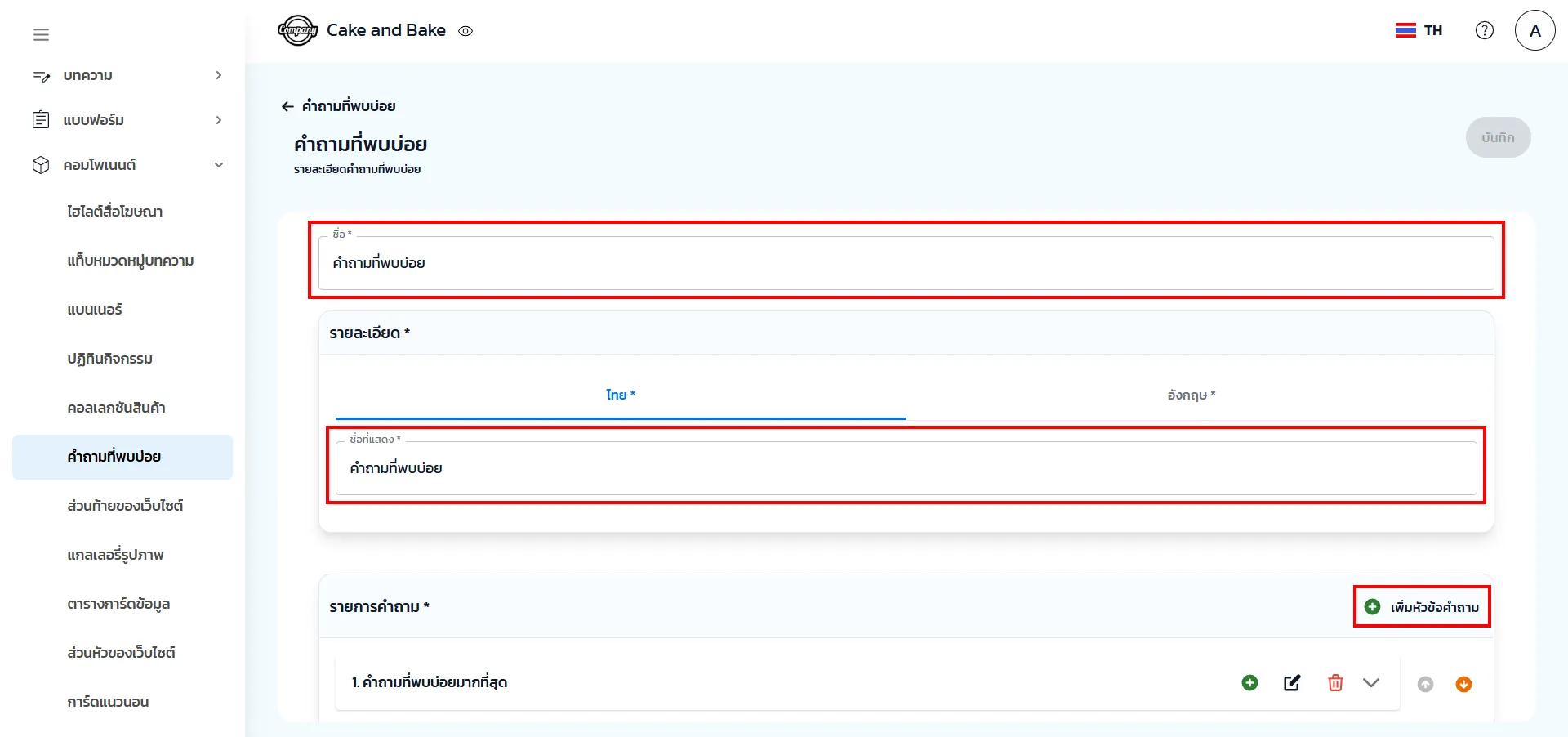 3. สามารถเพิ่มหัวข้อคำถามในหมวดหมู่ต่าง ๆ และเพิ่มคำถาม คำตอบไว้ภายใต้หมวดหมู่นั้น ๆ