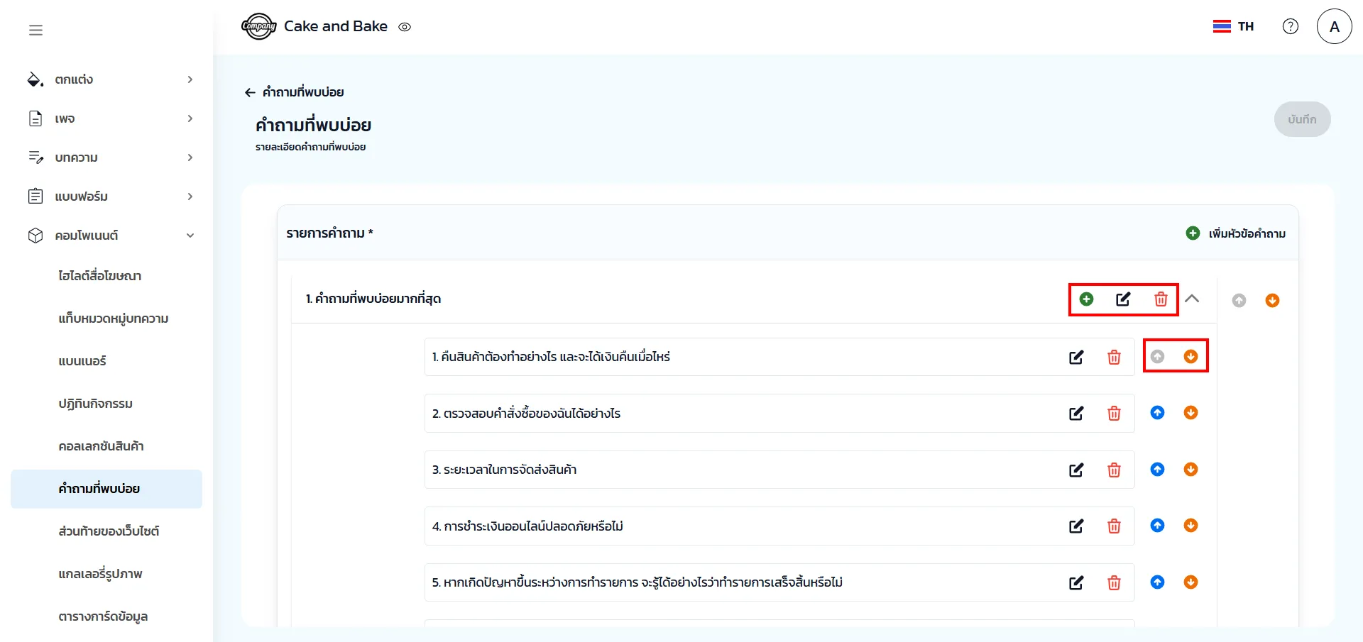 4. คำถามคำตอบที่สร้างขึ้นมา สามารถเพิ่ม แก้ไข ลบ และเรียงลำดับได้ตามที่ต้องการ