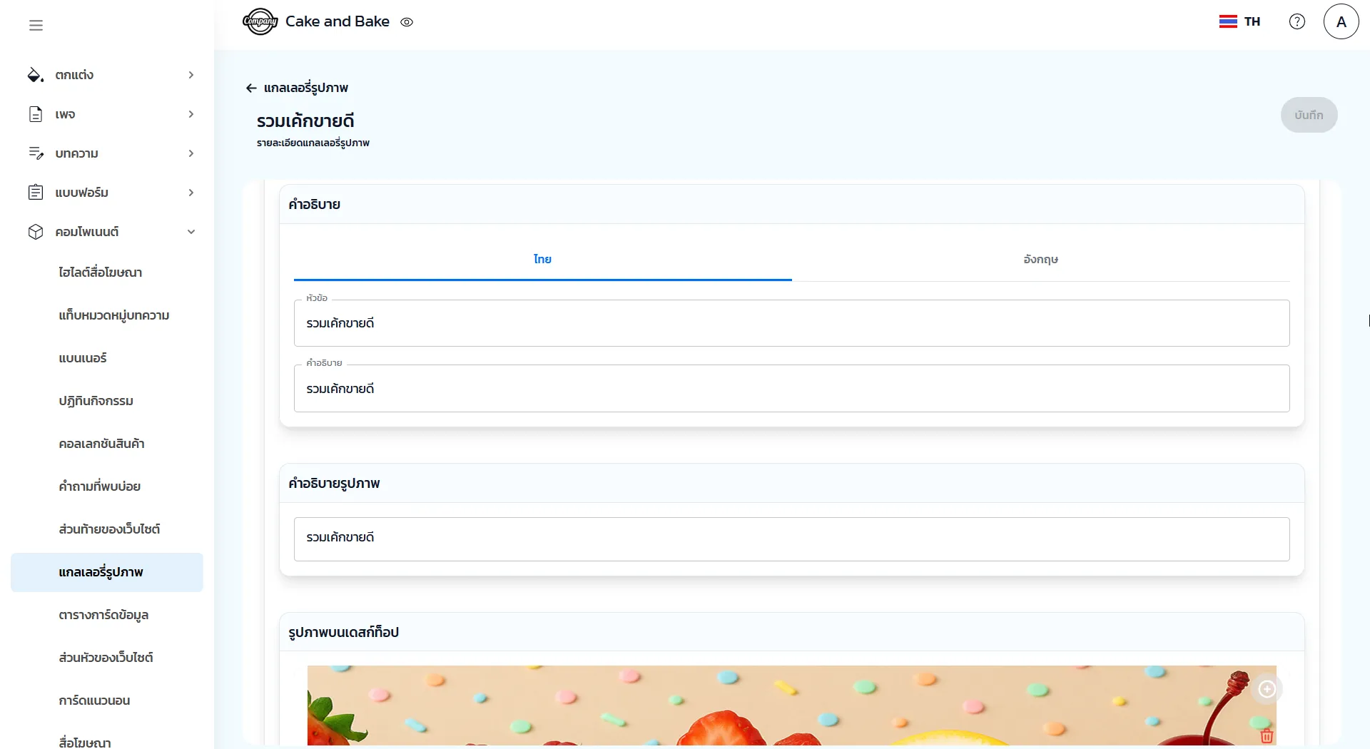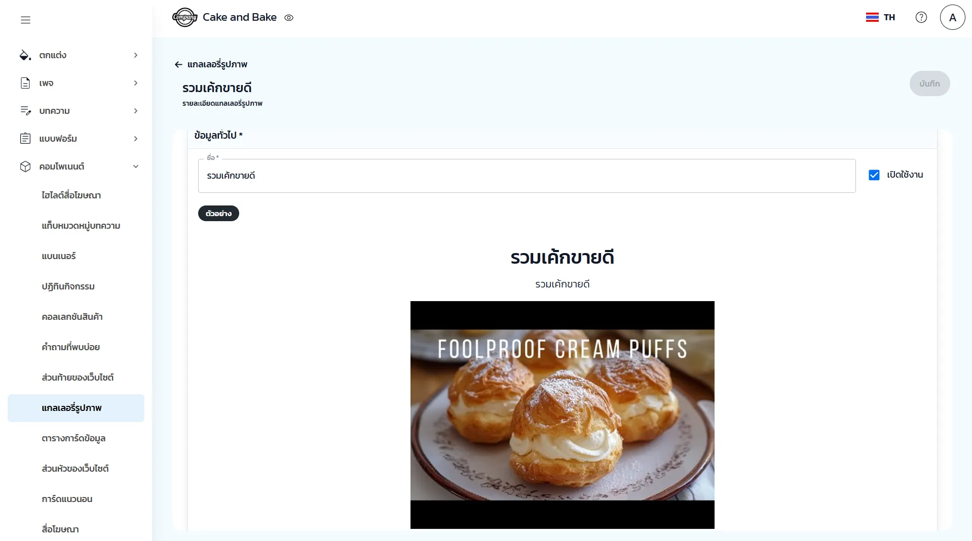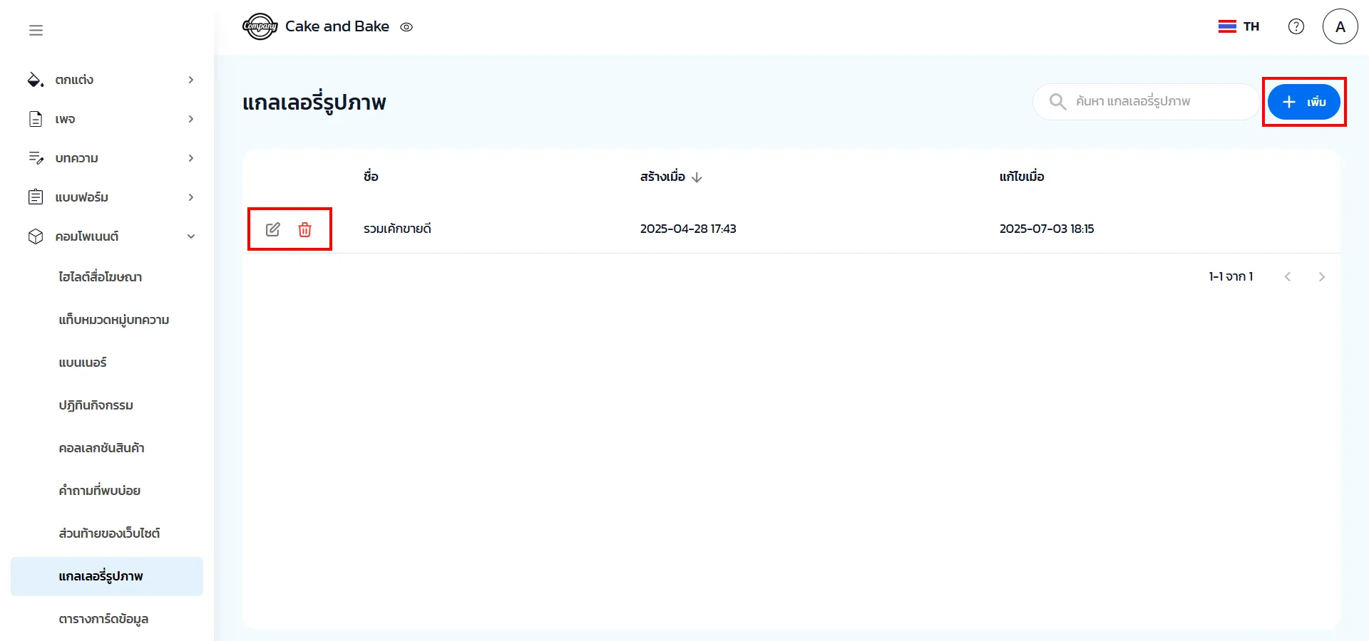 1. คลิก เพิ่ม หรือ แก้ไข แกลเลอรี่รูปภาพ จากนั้นกำหนดชื่อแกลเลอรี่ที่ต้องการ