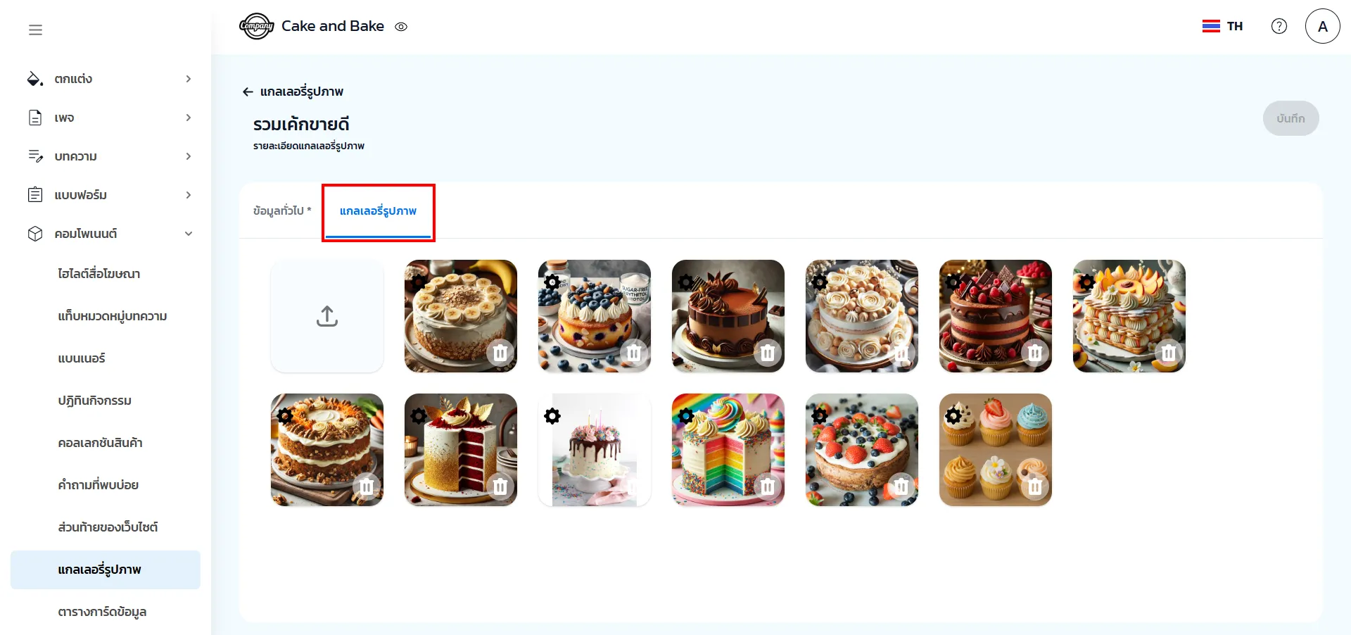 3. แกลเลอรี่รูปภาพ จากนั้นอัปโหลดรูปภาพที่ต้องการจากคอมพิวเตอร์ จากนั้น กด บันทึก