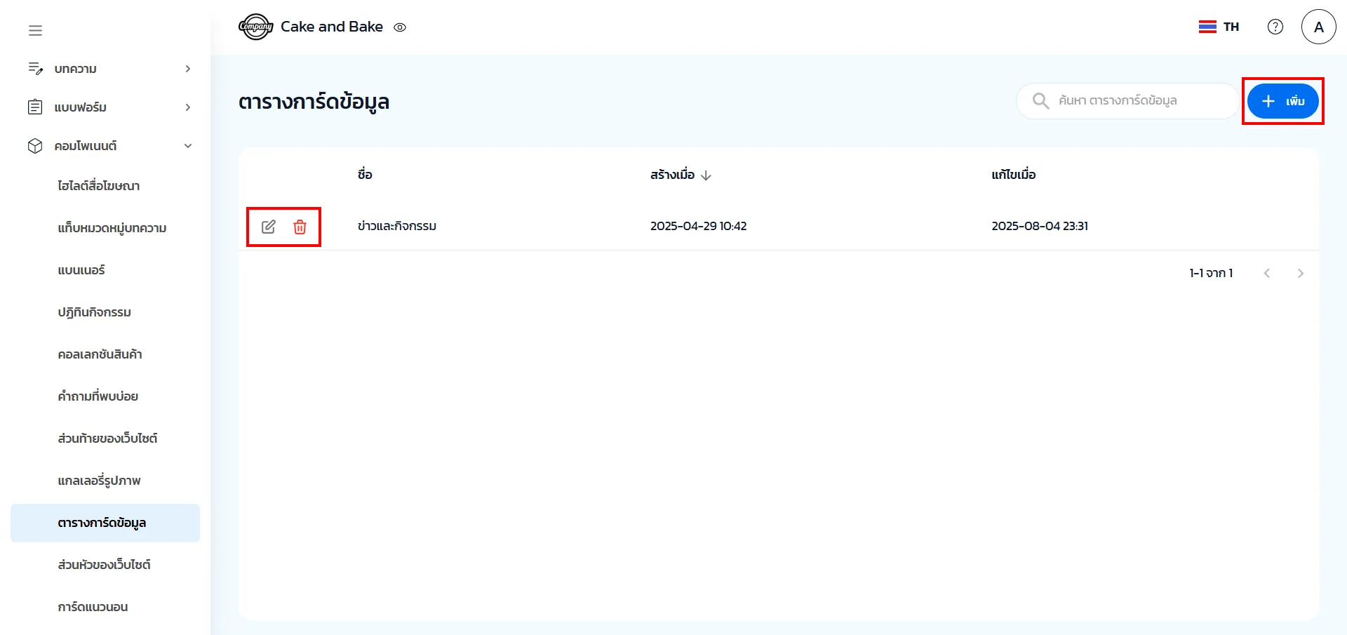 1. คลิก เพิ่ม หรือ แก้ไข ตารางการ์ดข้อมูลที่มีในระบบ