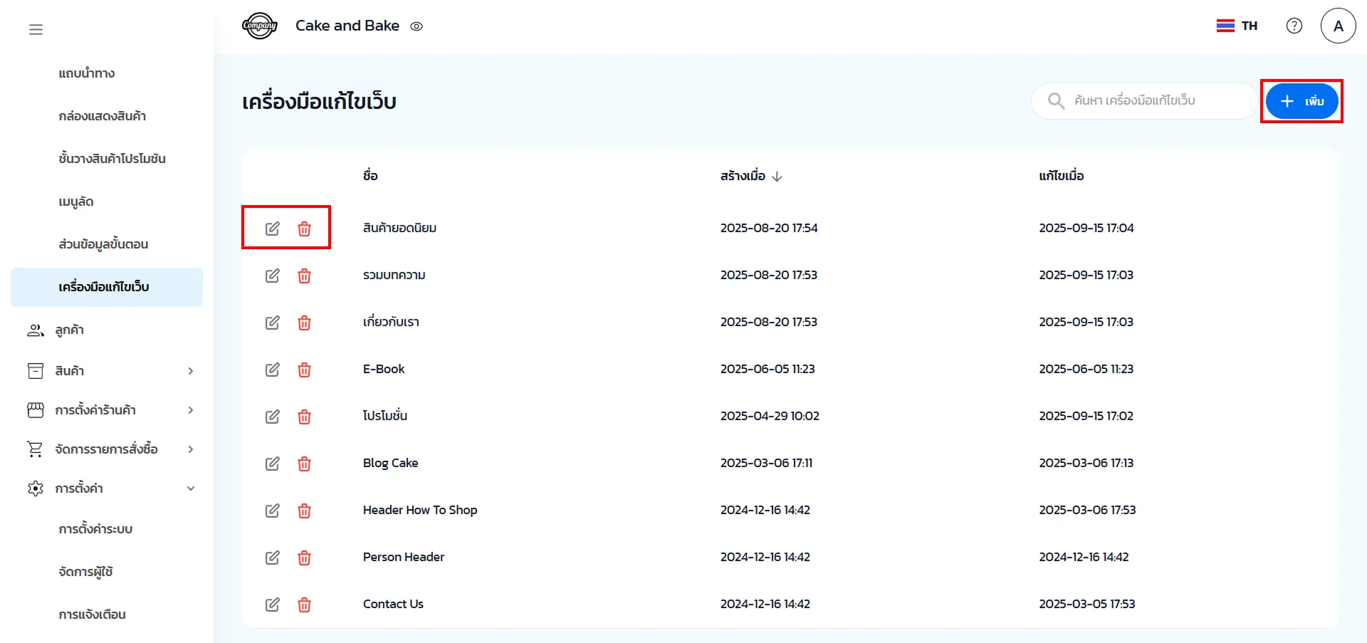 1. คลิก เพิ่ม หรือ แก้ไข จากส่วนหัวของเว็บไซต์ที่มีในระบบ