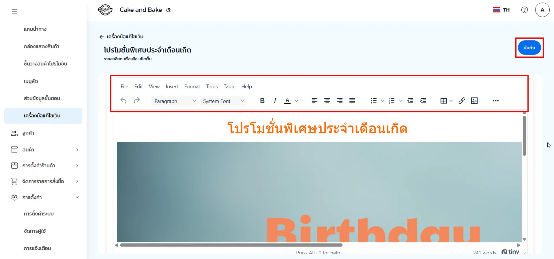 เครื่องมือที่เปรียบเสมือน Text Editor ใช้สำหรับการจัดการเนื้อหาในเว็บไซต์ที่มีรายละเอียดค่อนข้างมากที่ประกอบไปด้วยข้อความ รูปภาพ วิดีโอ ลิงก์ เช่น Blog, How to shop, Review หรือคู่มือการใช้งาน ซึ่งสามารถเพิ่มข้อมูล หรือเลือกรูปแบบได้ตามที่ต้องการ
