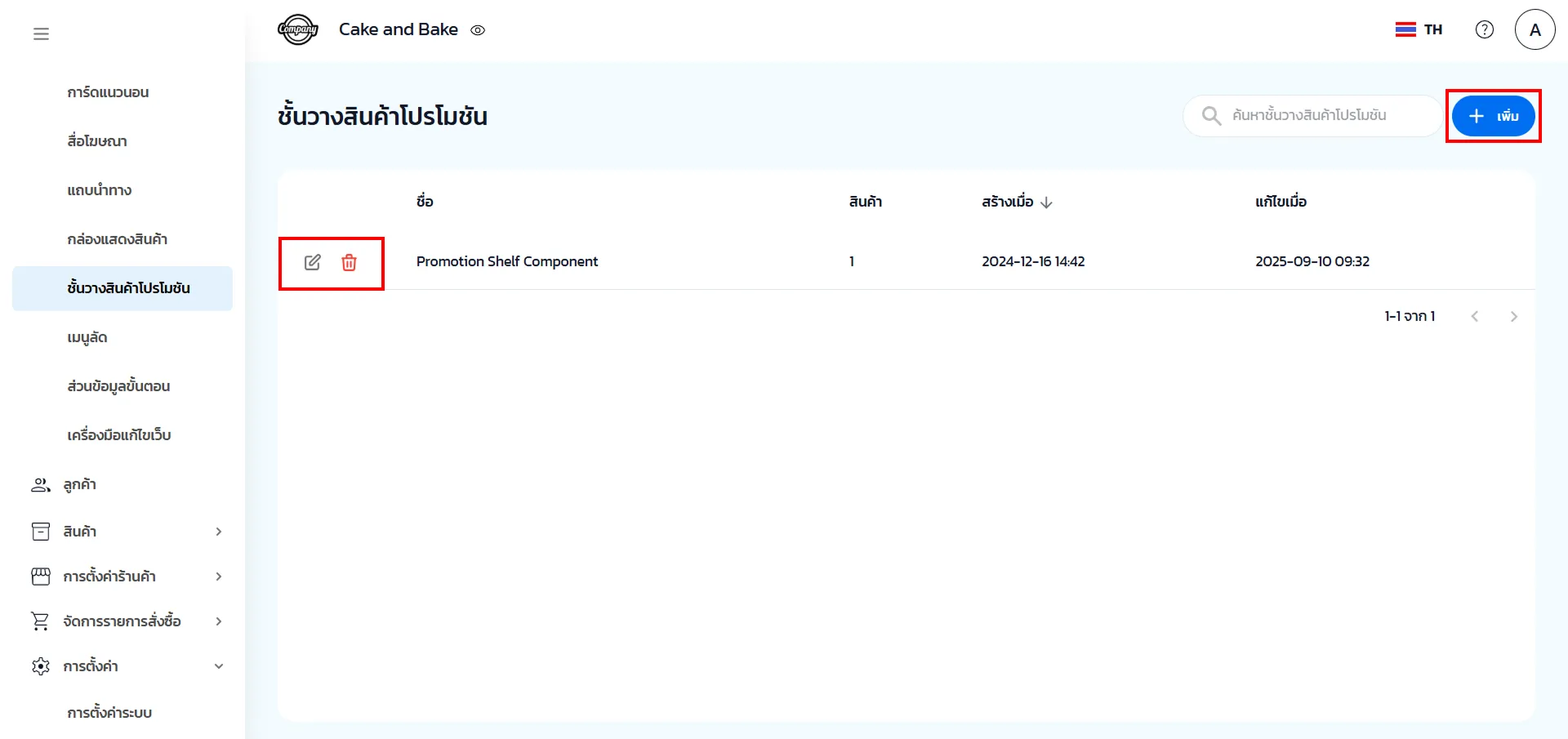 1. คลิก เพิ่ม หรือ แก้ไข ชั้นวางสินค้าโปรโมชันในระบบ