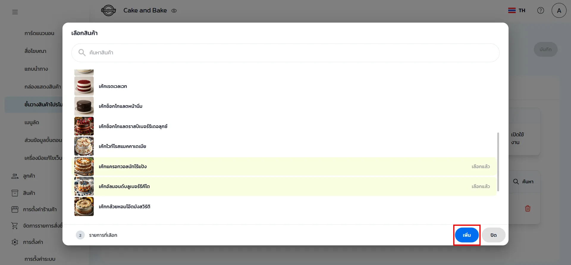 3. เลือกสินค้าได้ตามความต้องการ จากนั้นคลิก เพิ่ม