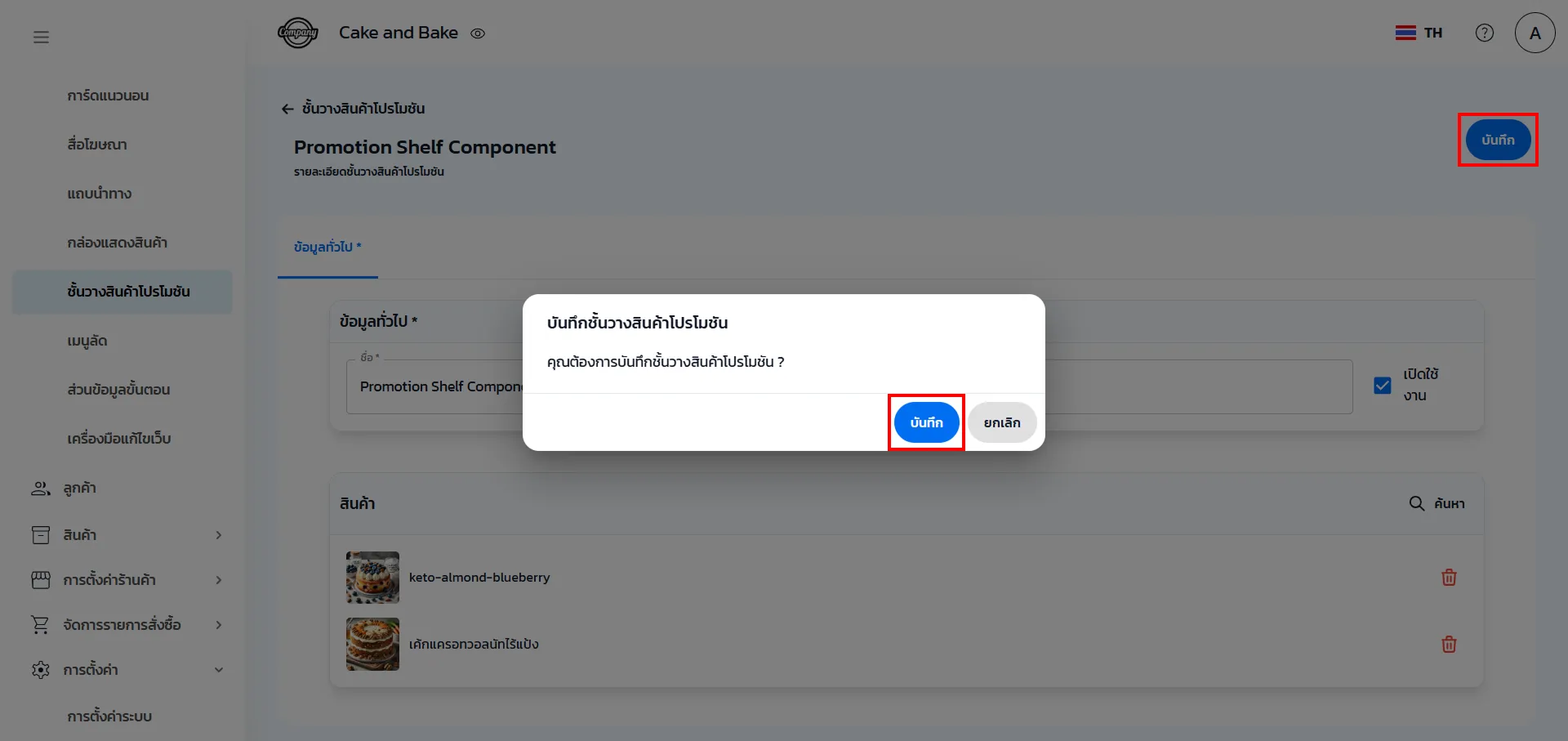 4. เมื่อเพิ่มรายการสินค้าเรียบร้อยแล้ว คลิก บันทึก ที่มุมบนด้านขวา แล้วคลิก บันทึก อีกครั้ง
